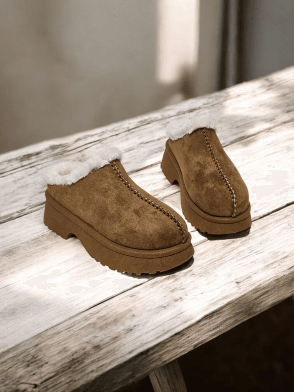 mules femme en daim avec boucle dorée pour une touche chic. parfaite pour vos moments cocooning ou vos sorties decontractees