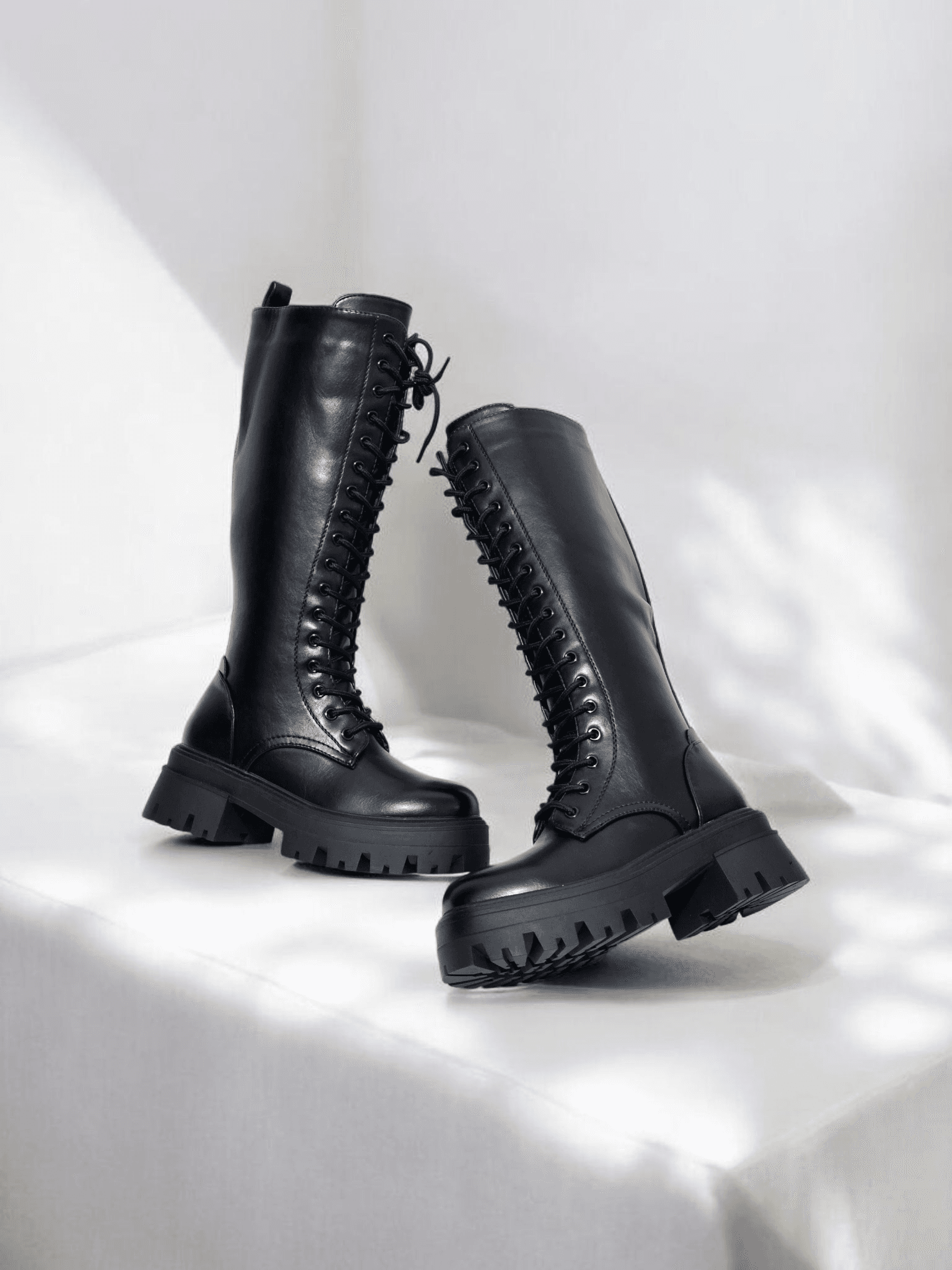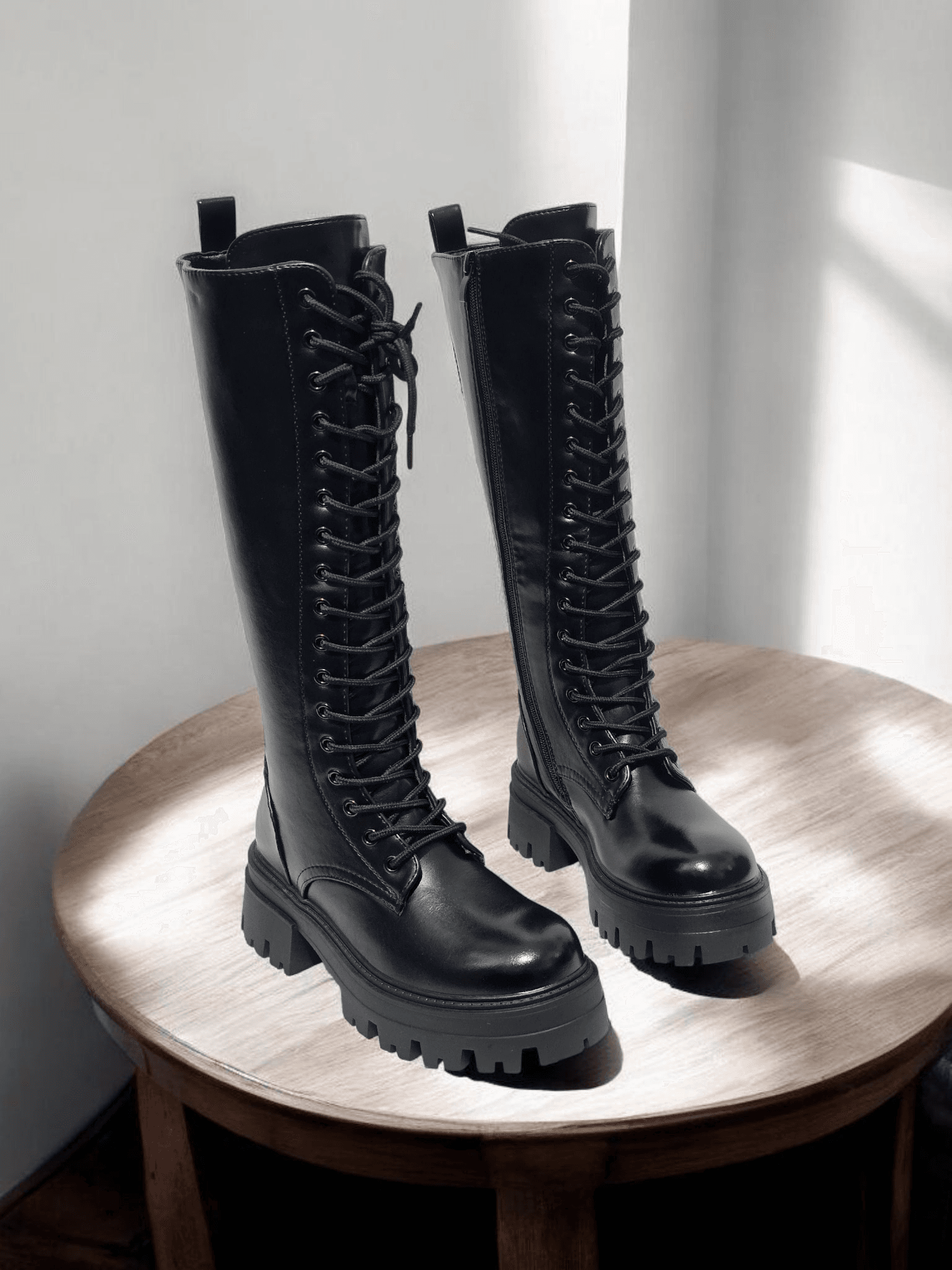 Bottes femmes noires hautes a lacets