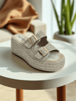 Le design de ces sandales a été pensé pour répondre aux exigences de confort sans compromettre le style. La semelle compensée, légère et stable, permet à vos pieds de rester détendus même lors de longues périodes de marche. Les matériaux souples et respirants utilisés dans la fabrication assurent une excellente adaptation à la forme du pied, évitant ainsi les inconforts et la fatigue.