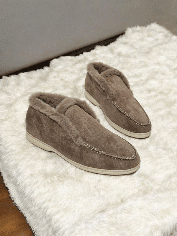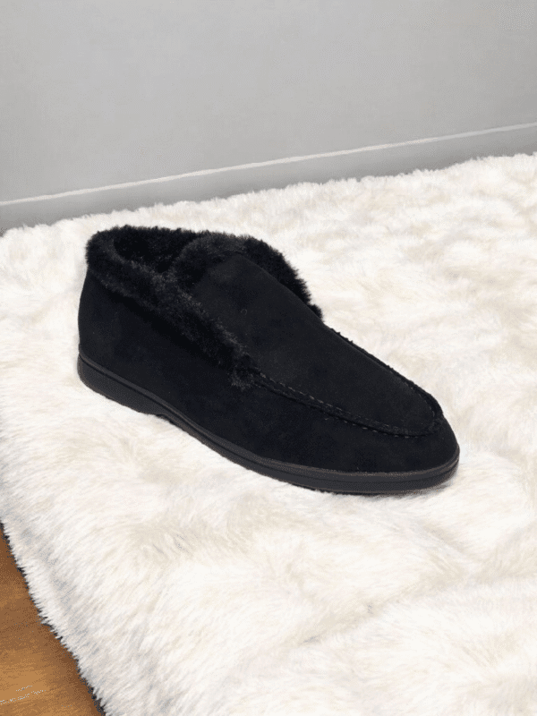 Chaussures daim se forme de pantoufle avec de la fourrure